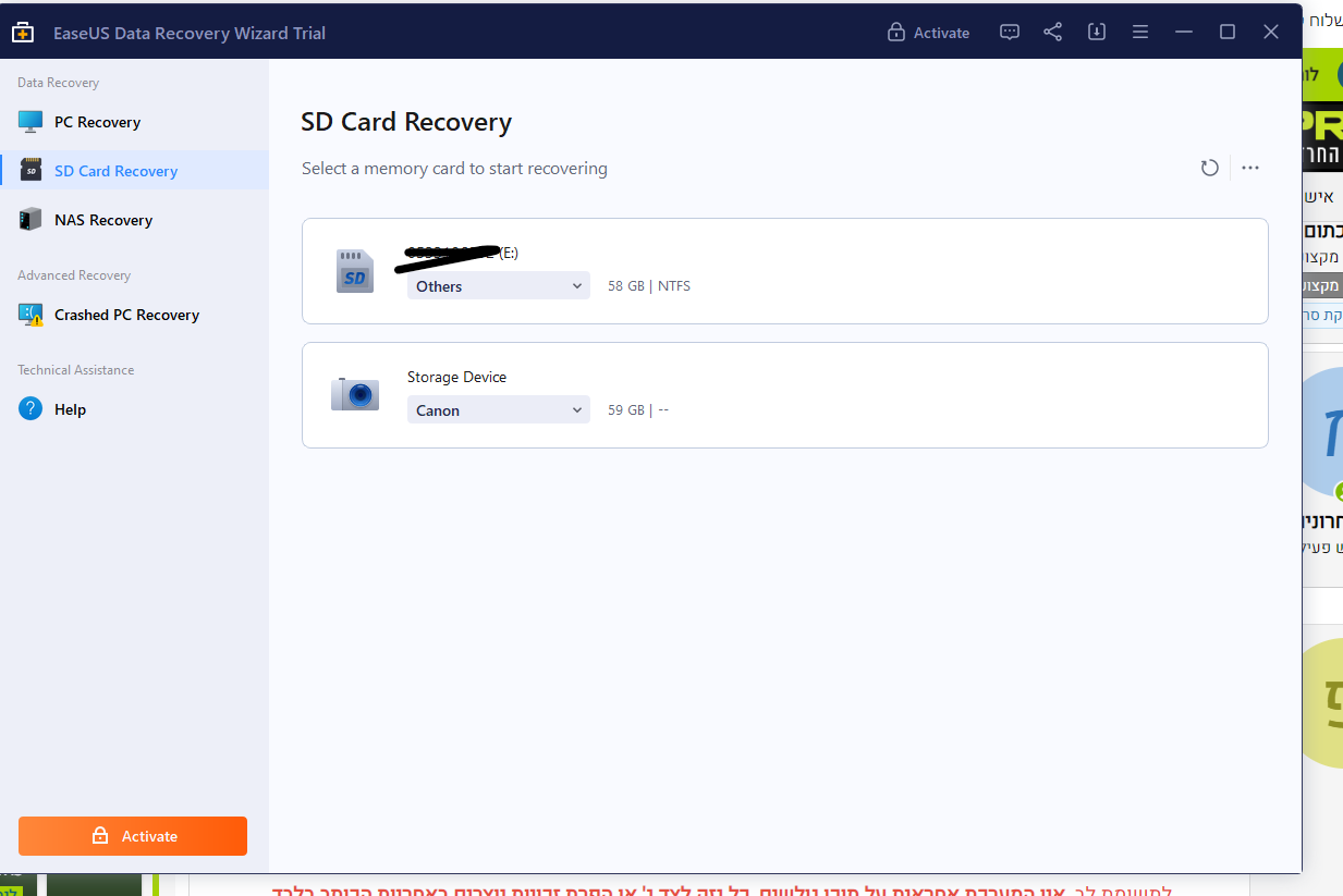 להיזהר מאד! לא לשחזר בשום אופן לכרטיס עצמו! אלא רק למדיה אחרת, אם משחזרים לכרטיס עצמו זה עלול לגרום נזק בלתי הפיך לקבצים המחוקים ולמנוע אפשרות שיחזור עתידית!