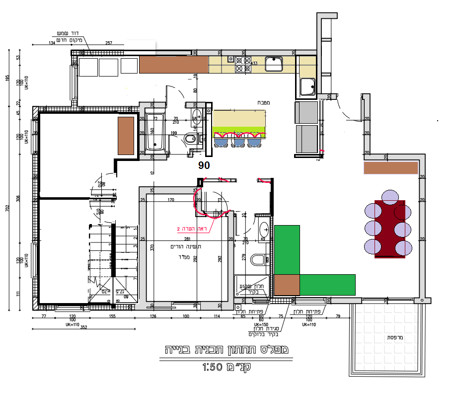 היה יותר נכון לתכנן חדר שינה נורמלי באיזור החדרים החדשים משמאל גם במחיר של חדר אחד פחות