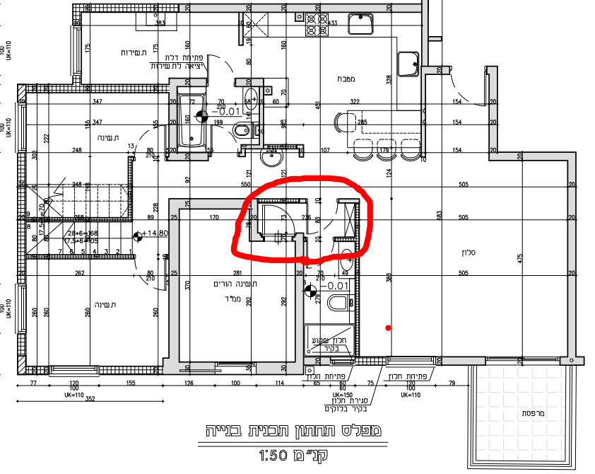 ל90 ולהרחיב את המבואה בעוד 30 ס"מ -- גם במחיר להוציא משם את הכיור נ"י