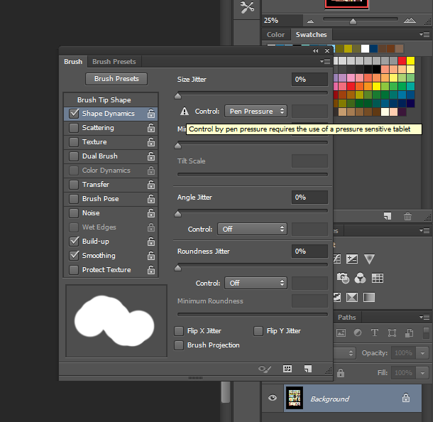 צריך להגדיר את המברשת לרגישה ללחץ.