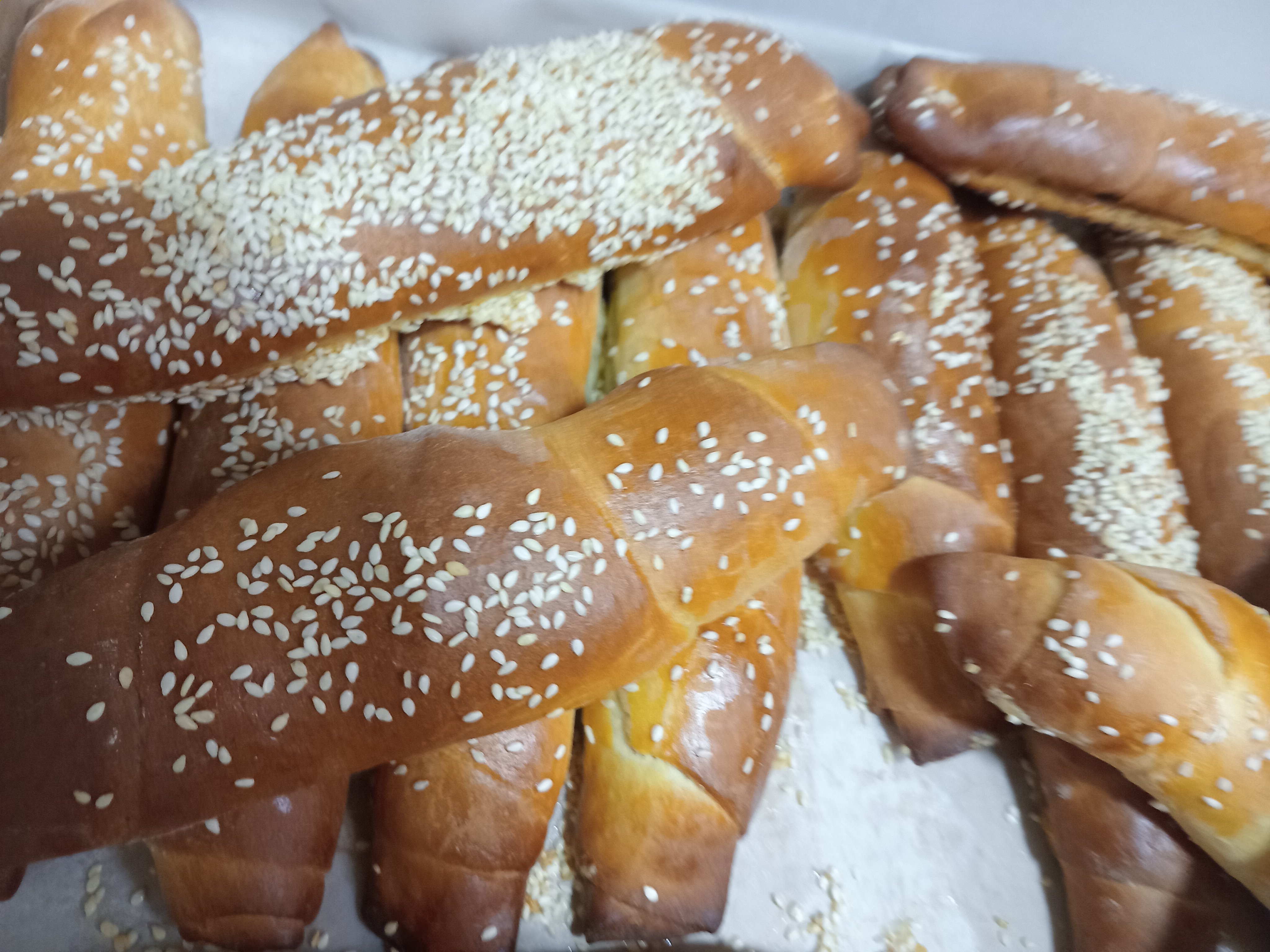 מושחים בביצה מהולה במים + מעט מלח וסוכר ומפזרים שומשום/שומשום שחור מלמעלה