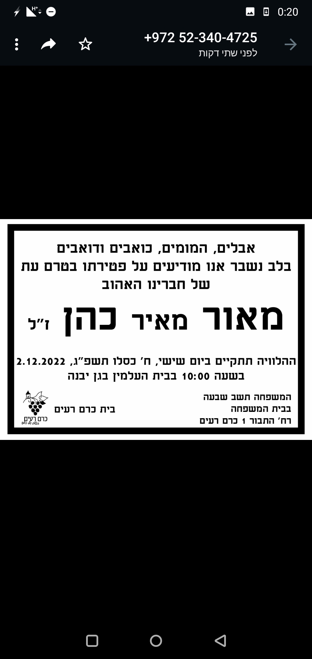 עצוב מאד!טרגדיה בכביש: מאור כהן ז"ל מהיישוב 'כרם רעים' נהרג בתאונה הקשה עם מעורבות מס' רכבים מוקדם הערב סמוך למעבר חשמונאים.