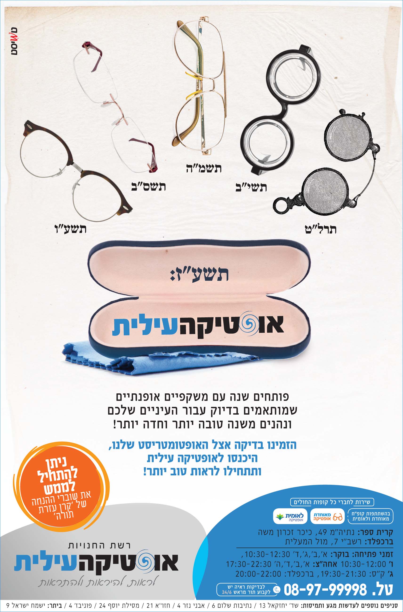 המשקפיים משנת תשמ"ה מאוד עדכניות, כך שחנות שלא מבינה את זה, היא לא עדכנית.