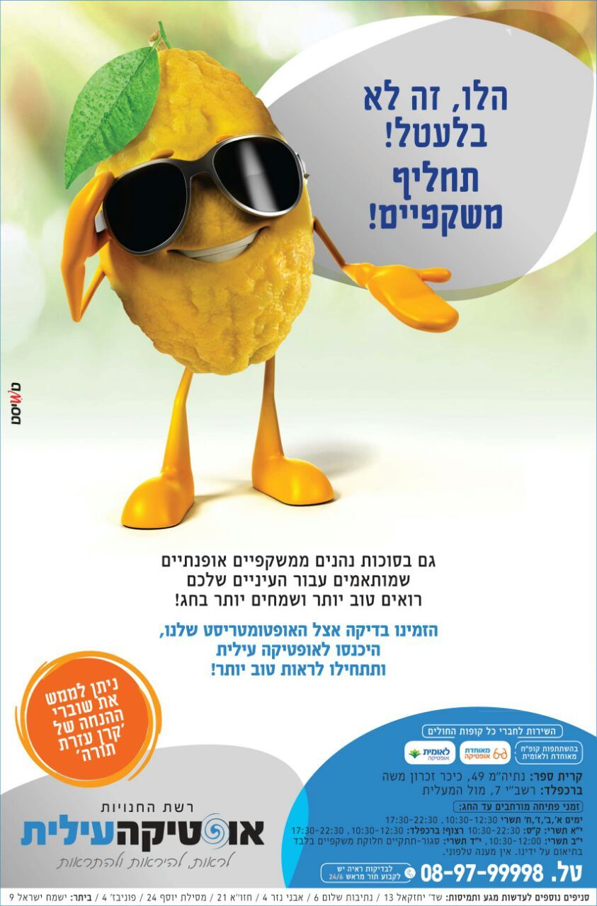 וכן כל מי שיש לו משקפיים בסגנון תשע"ו עלול לא לאהוב את המודעה והחנות. לא כיף לשמוע שהמשקפיים שלך לא עדכניות... גם אם רוצים לגרום לי להתחדש.