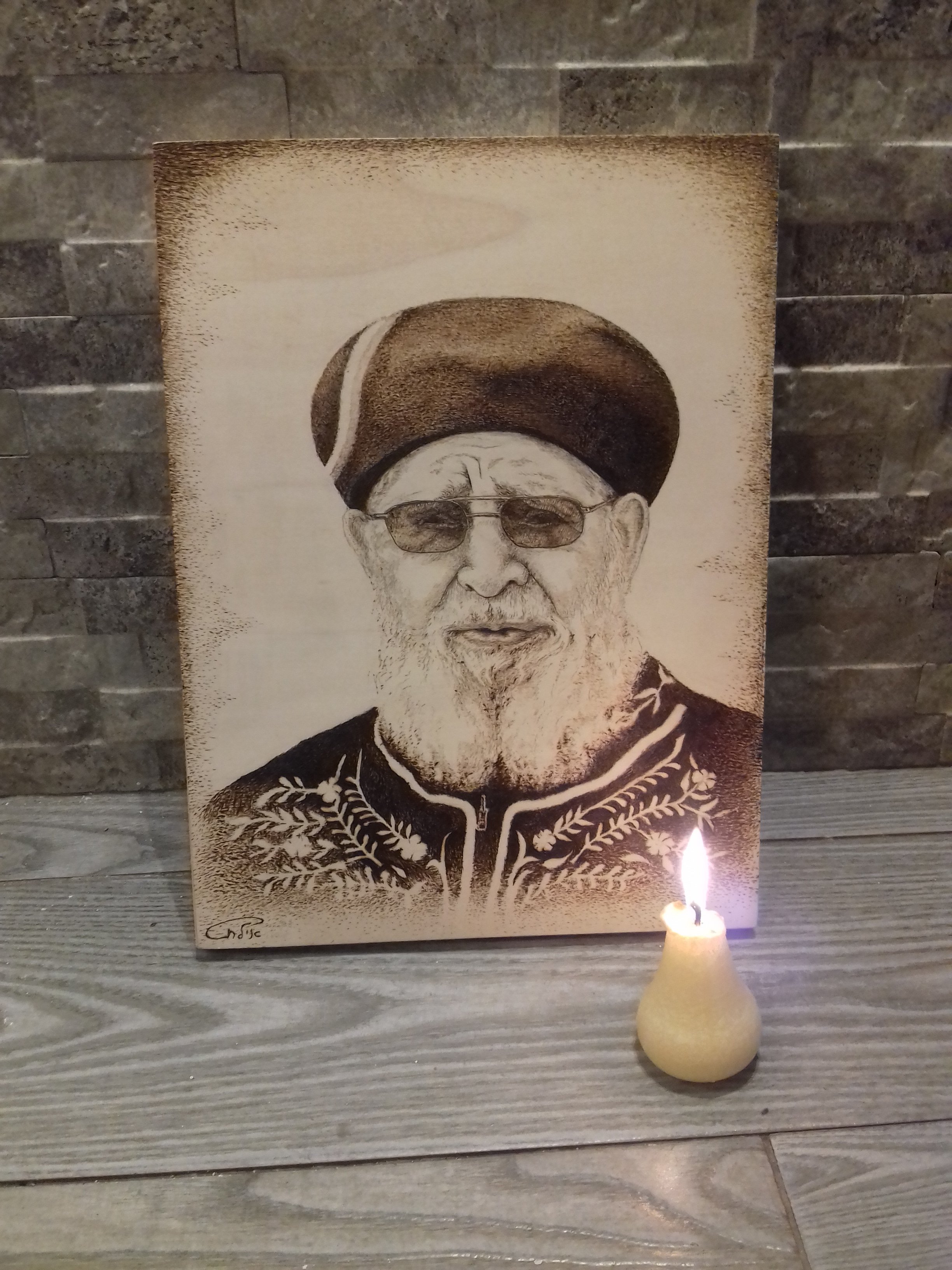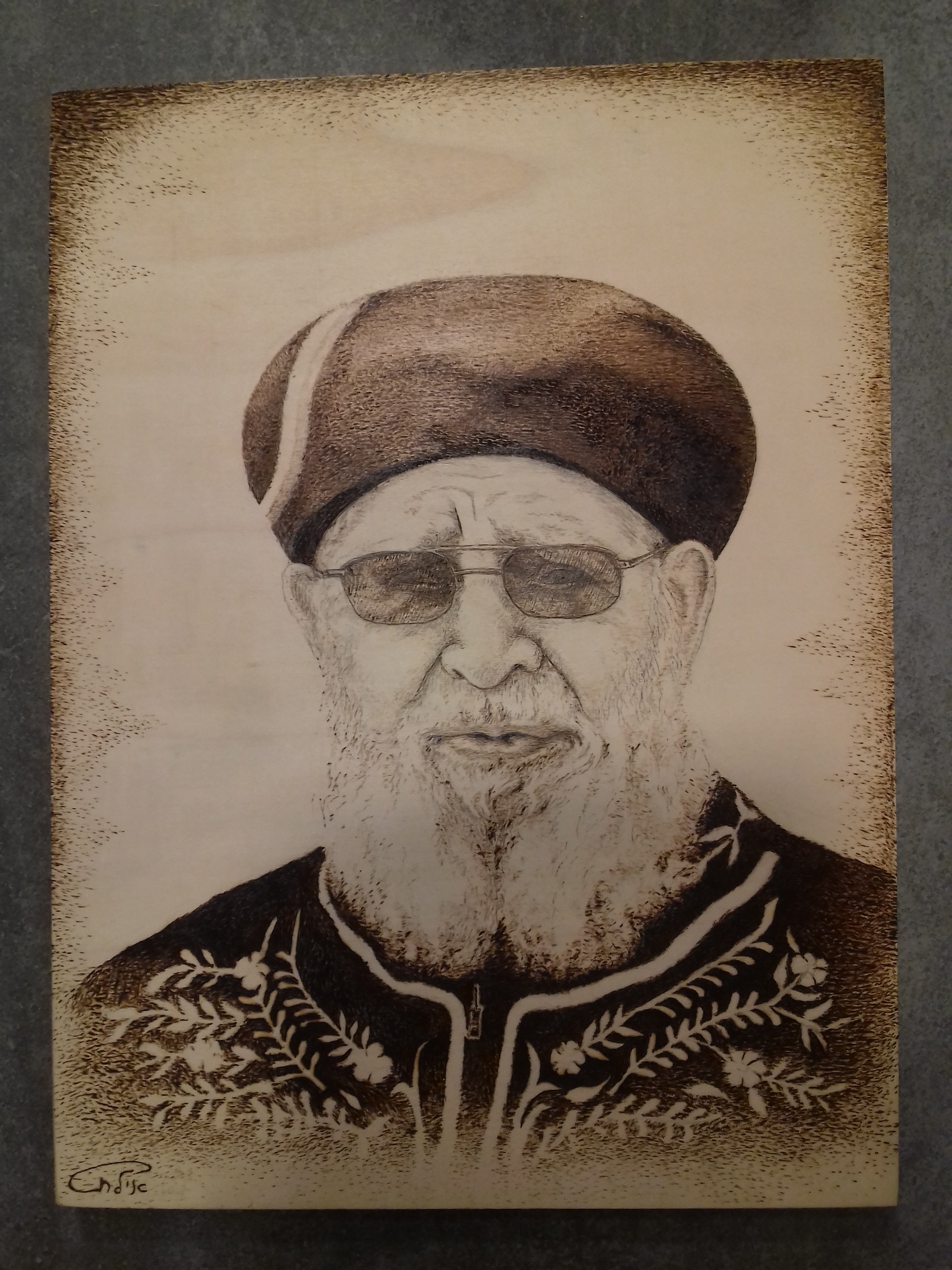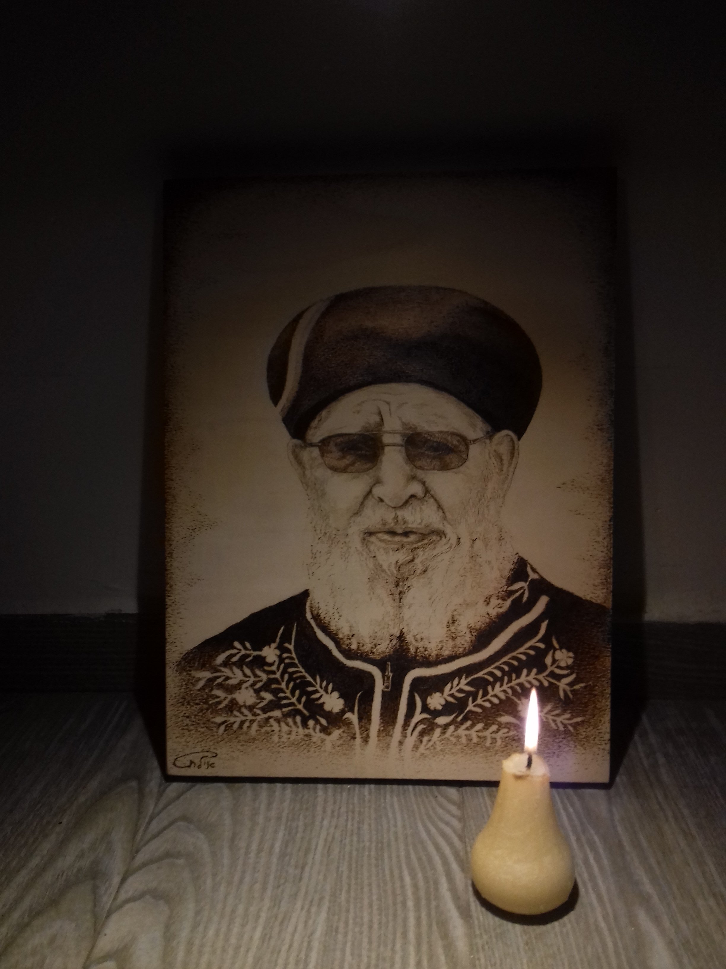 שיתוף דיוקן בצריבה על עץ של הרב עובדיה יוסף ז"ל