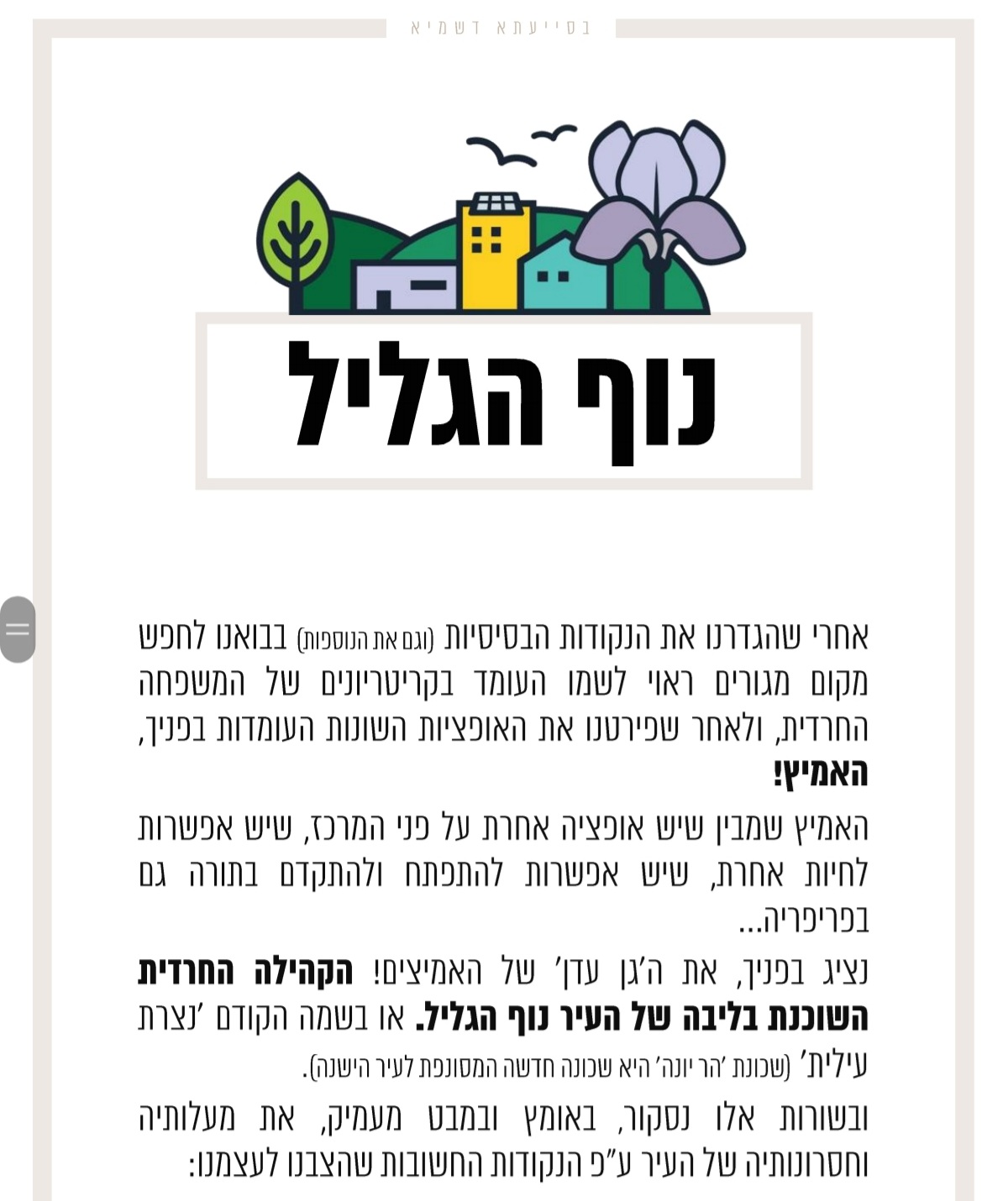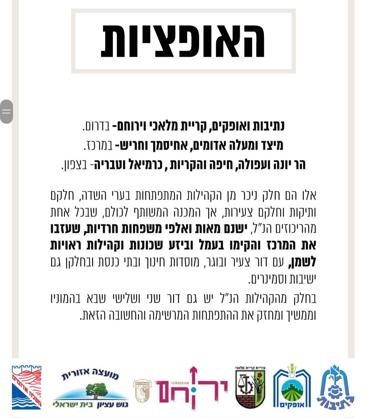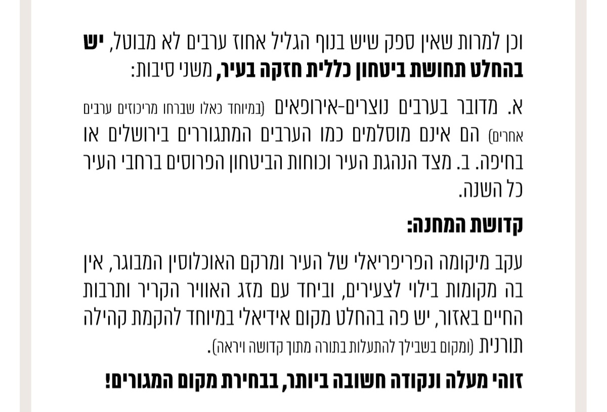 דימונה ועפולה הן פיתרון רק לחסידויות מסויימות