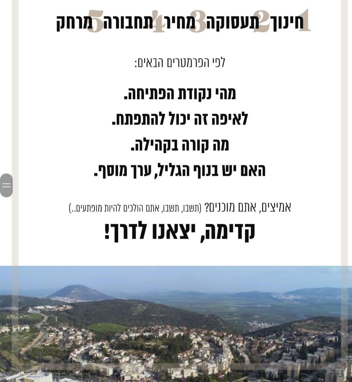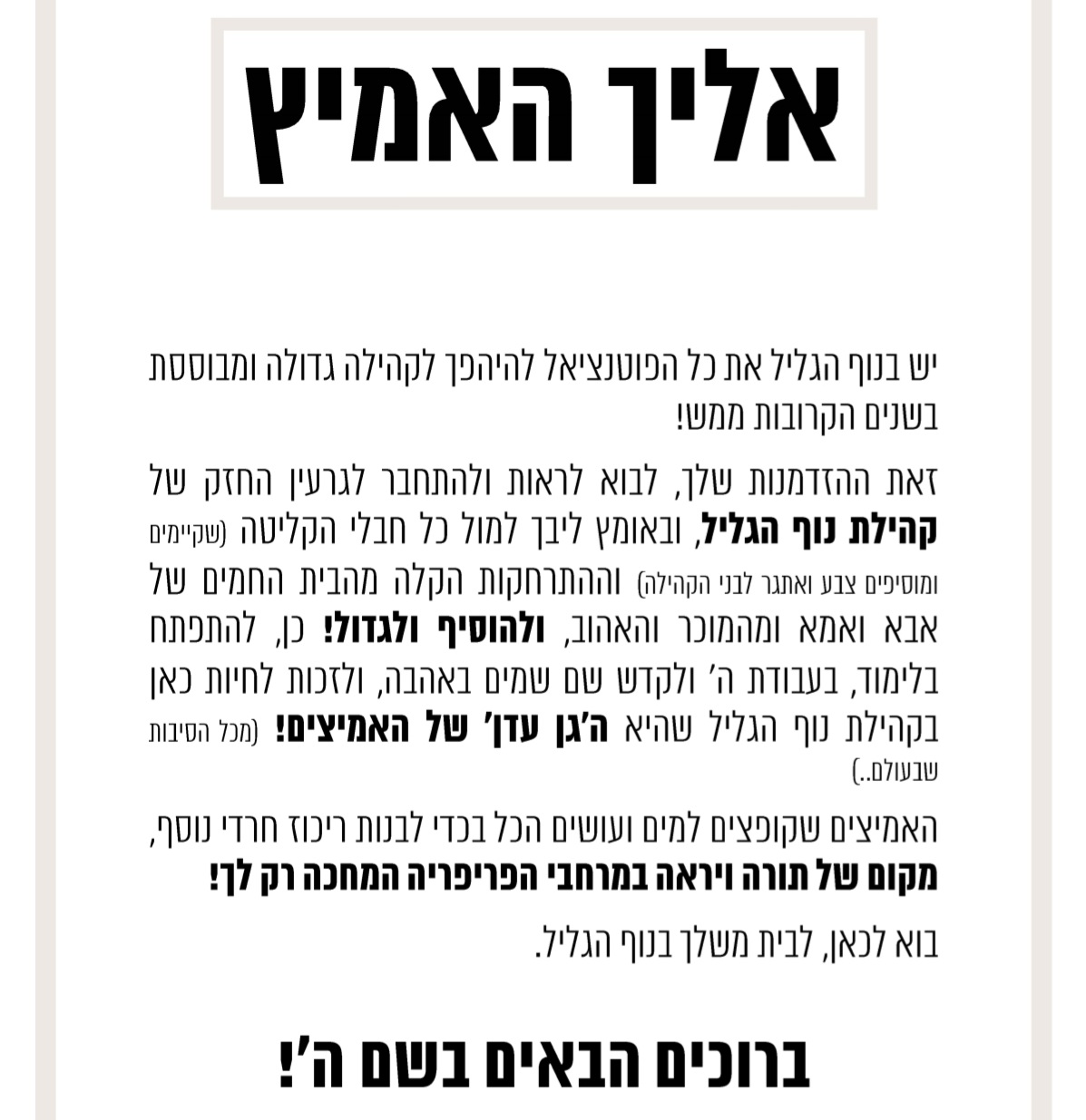 מי שמעוניין להצטרף או לשמוע על הקהילה החדשה בנוף הגליל