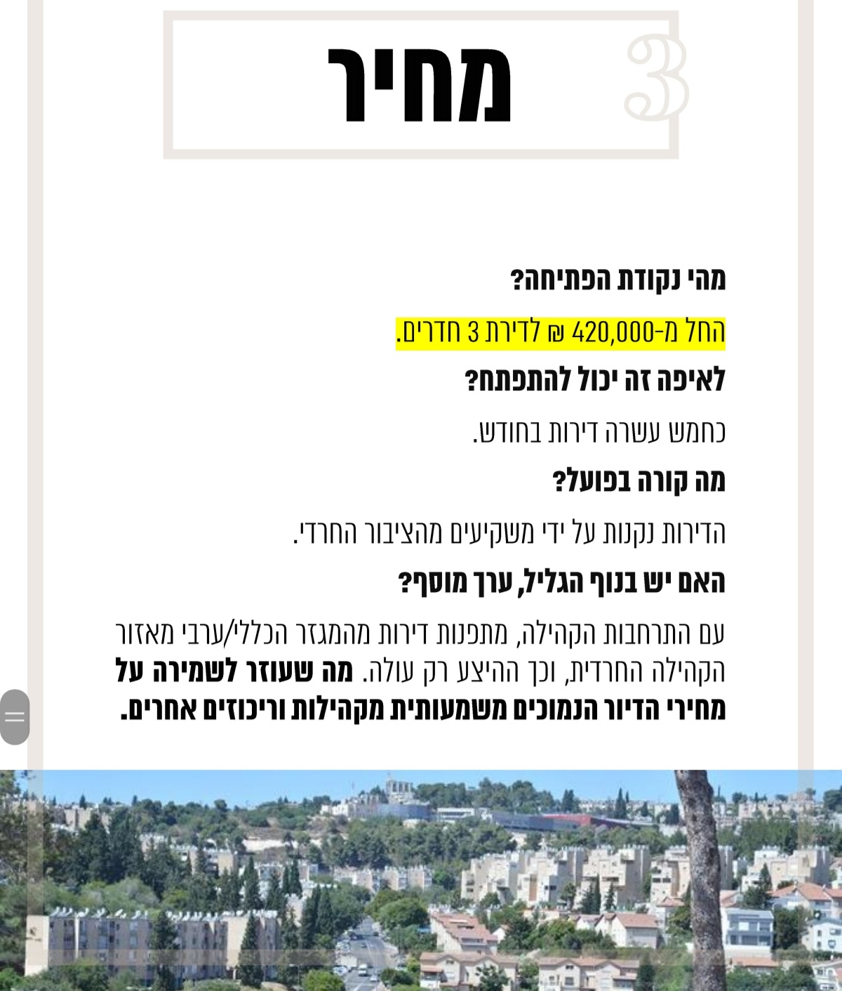 האם יש עדיין מקומות בארץ שיש בהם קהילה חסידית ומחירי הדירות שם הם סביבות ה600000 ל3 חדרים? כבר כמעט נואשתי מלמצוא מחירים שפויים