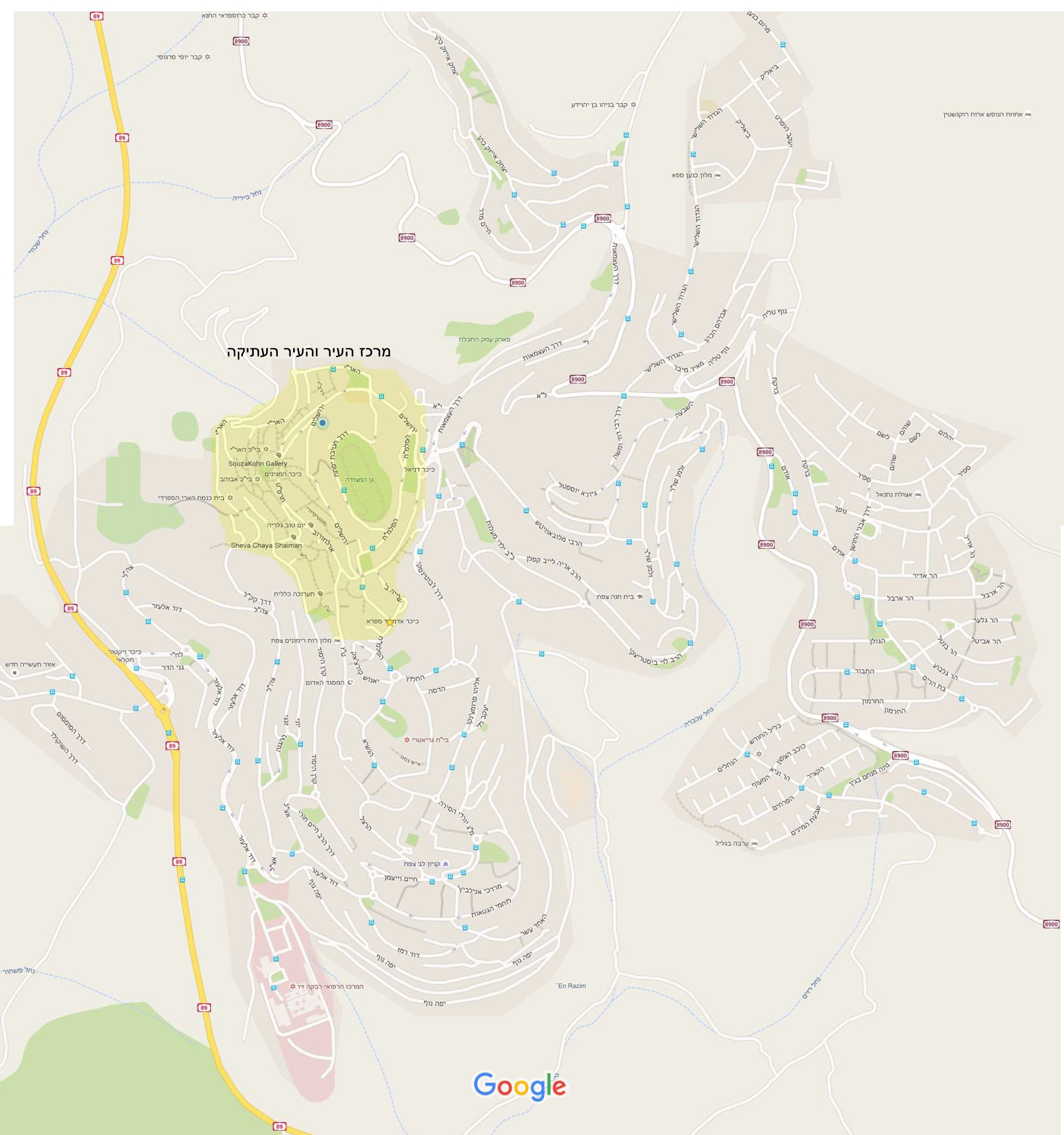 בעיר העתיקה, הכי קרוב שיש לרחוב ירושלים שבו נמצאות כל החנויות והמסעדות, בקרבת כל בתי הכנסת. סמוך למצודה, לרחוב האר"י ולתחנה המרכזית. ממש במרכז העיר.