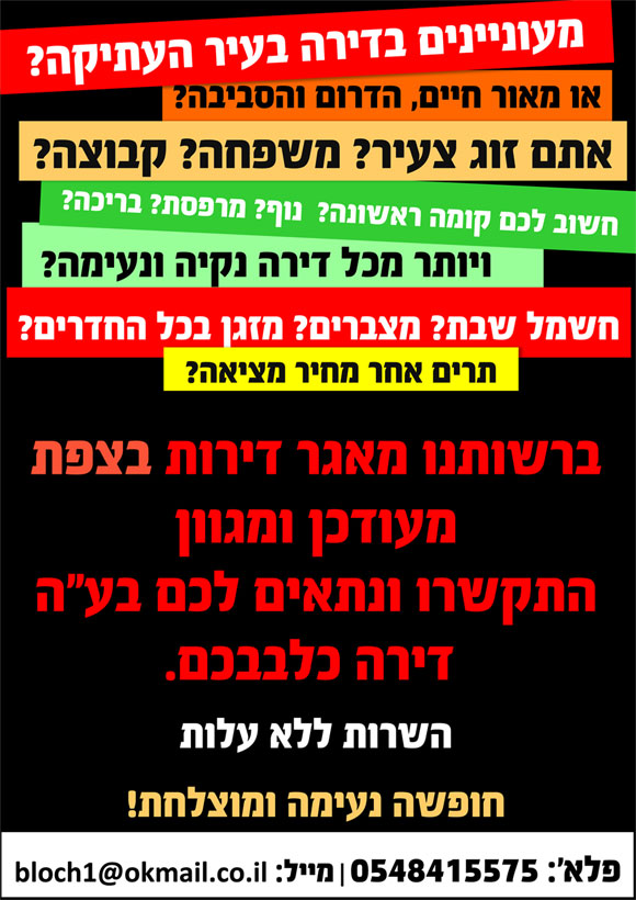דירות להשכרה בצפת לבין הזמנים
