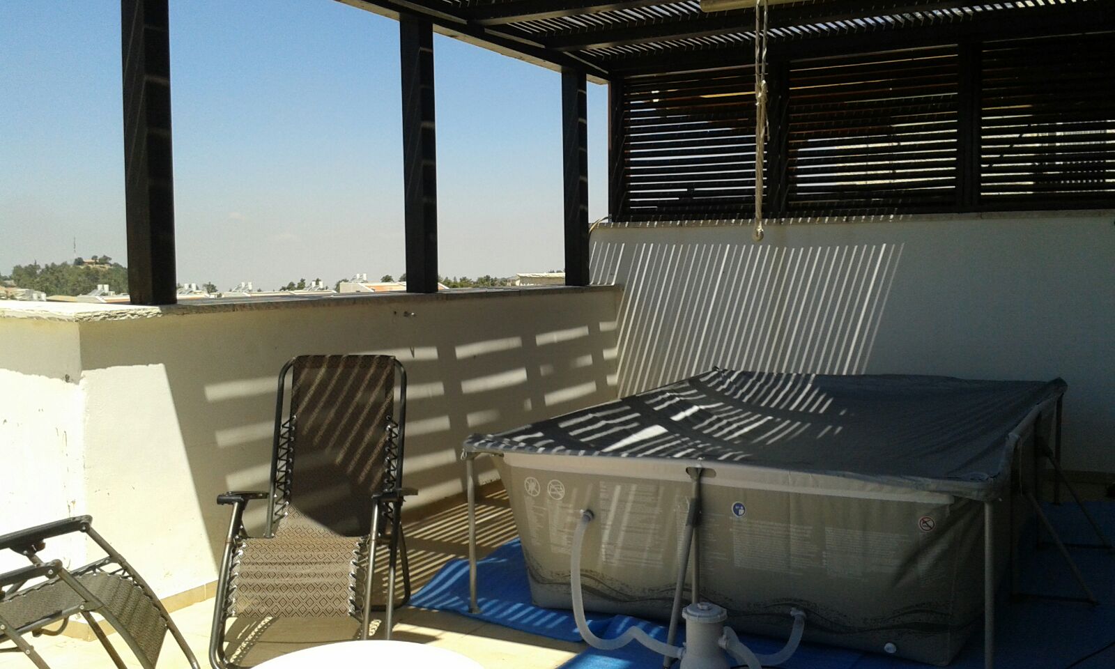 מרפסת מאובזרת - בריכת עמודים ,ערסלים , וטרמפולינה