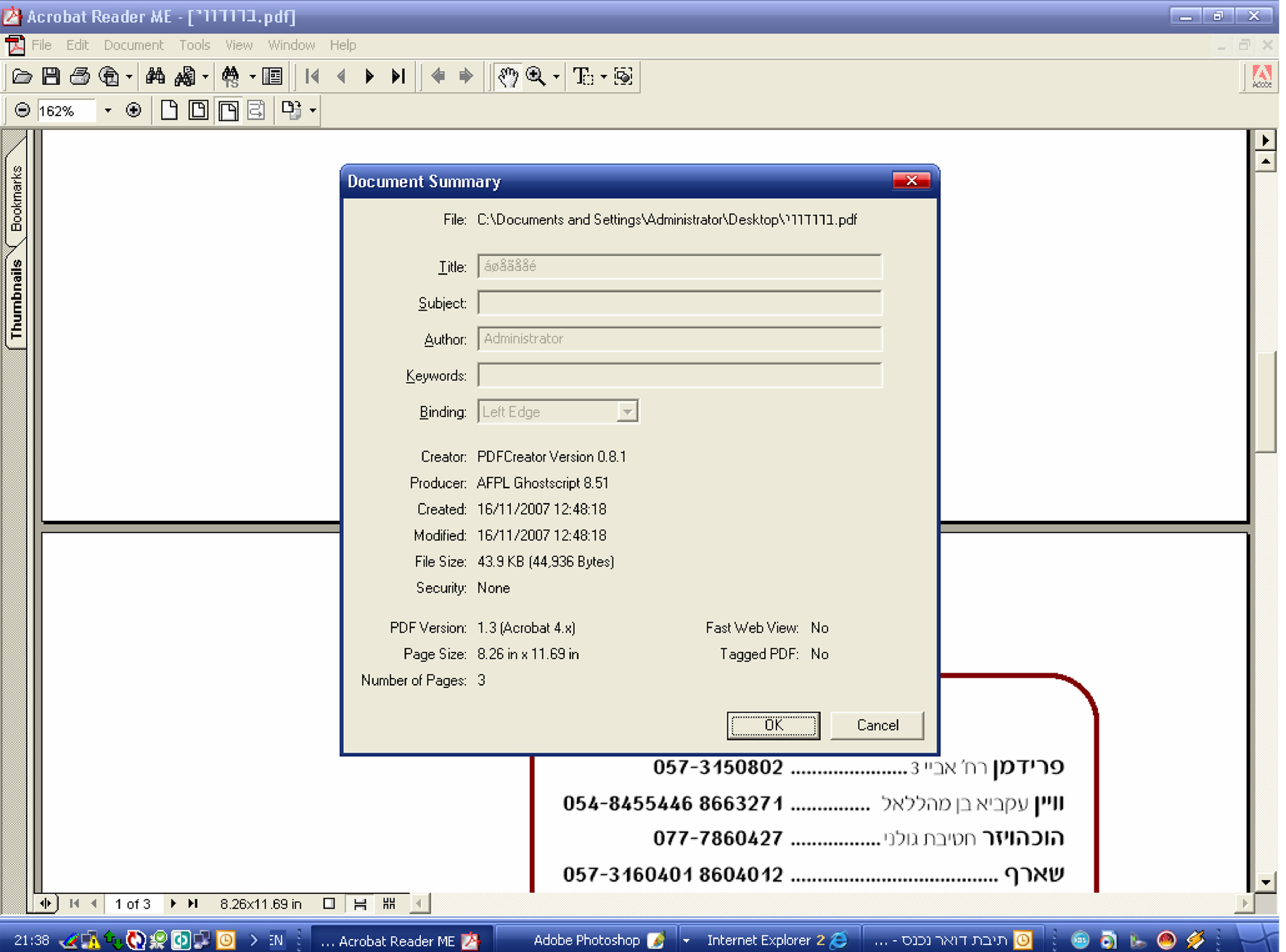 אביגדור, אין לך באקרובט File > Document properties ??