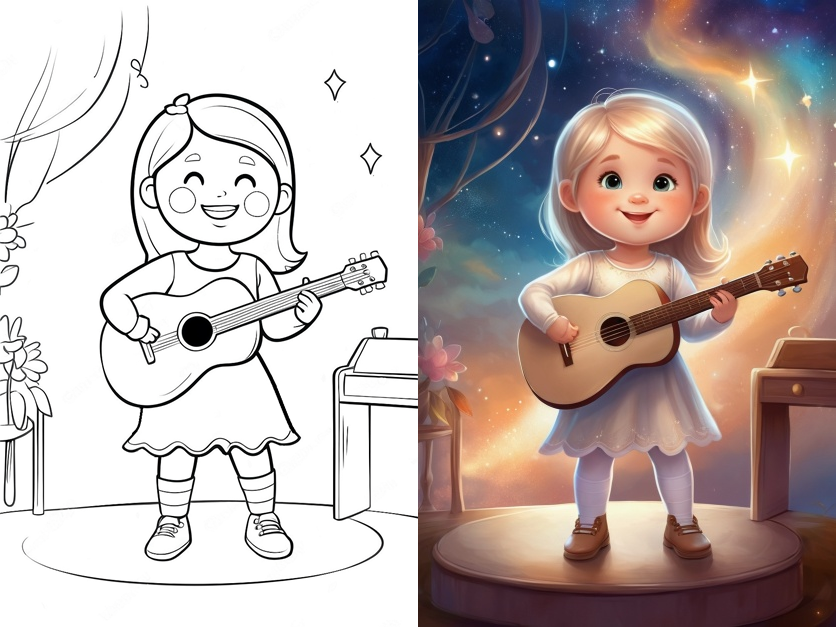 יש לך גם ציור של ילדה מחזיקה שופר וסידור