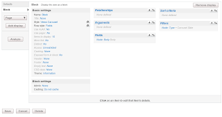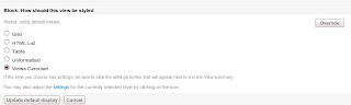 אחר כך, בתיבת הגלילה מצד שמאל, איפה שכתוב page בחרתי block ולחצתי על Add Display. סימנתי את ה־Display Block. בקופסה Basic Settings יש לשנות את השדה Style מ־Unformatted ל־Views Carousel. ואז ללחוץ על הכפתור Override, ולאחר מכן Update.