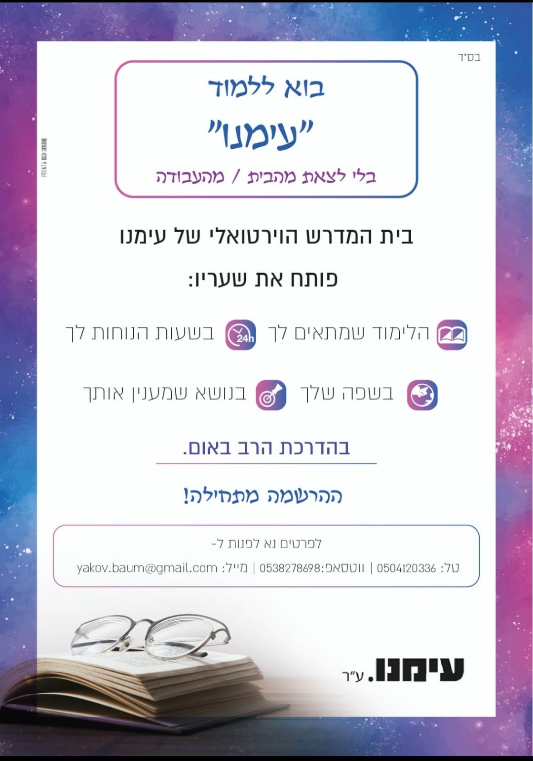 דרוש מידע דרושה מסגרת תורנית לאברך מתמודד