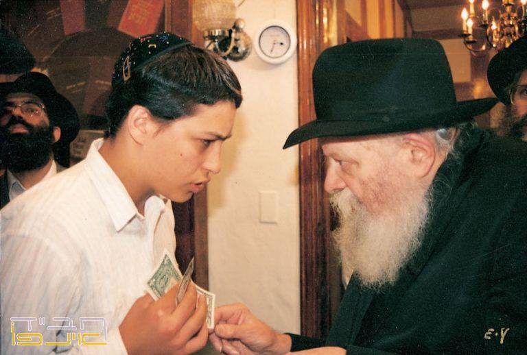 כללי דרושה תמונה: הרבי מליובוויטש נותן דולר לילד