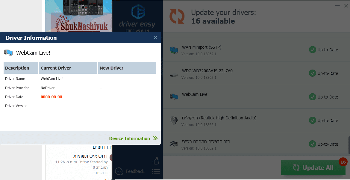 תוריד את זה תתקין ותפעיל, תעשה סריקה - הוא יסרוק את כל הדרייברים החסרים \ הלא מעודכנים בסוף הוא יציג לך את הכל, תבחר במצלמה שלך ותוריד בסוף הוא אמור לפתוח לך תיקיה עם הקבצים של מנהל ההתקן ואתה צריך לעשות כמו קודם עדכון דרך מנהל התקנים. ותכניס את הנתיב של התיקייה ההיא. [הוא ינסה כמה פעמים 'לדחוף' לך את גירסת הפרו, תשים לב ואל תיפול]