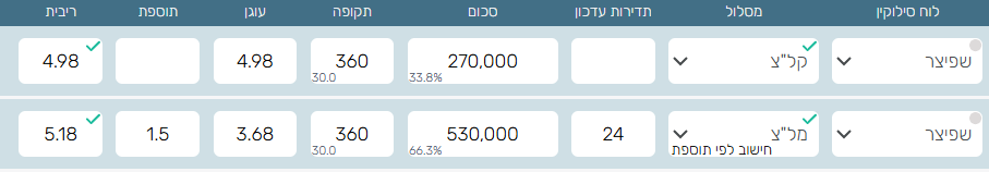 אני כעת לוקח משכנתא לשיפוץ במזרחי 850 אלף קל"צ 4.75 מל"צ 4.56.