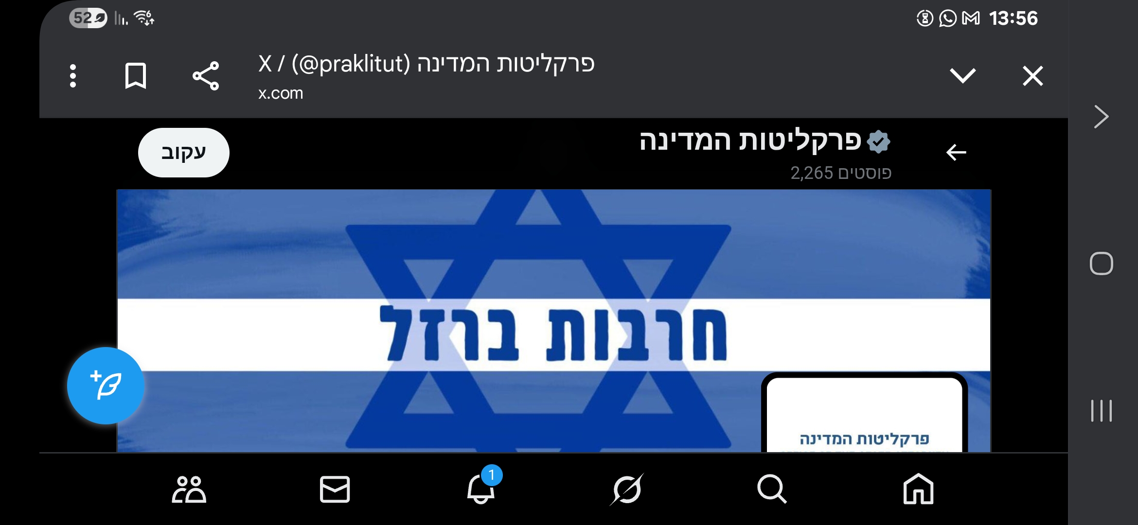 במסך X (טוויטר) של הפרקליטות רשום באותיות גדולות "חרבות ברזל"