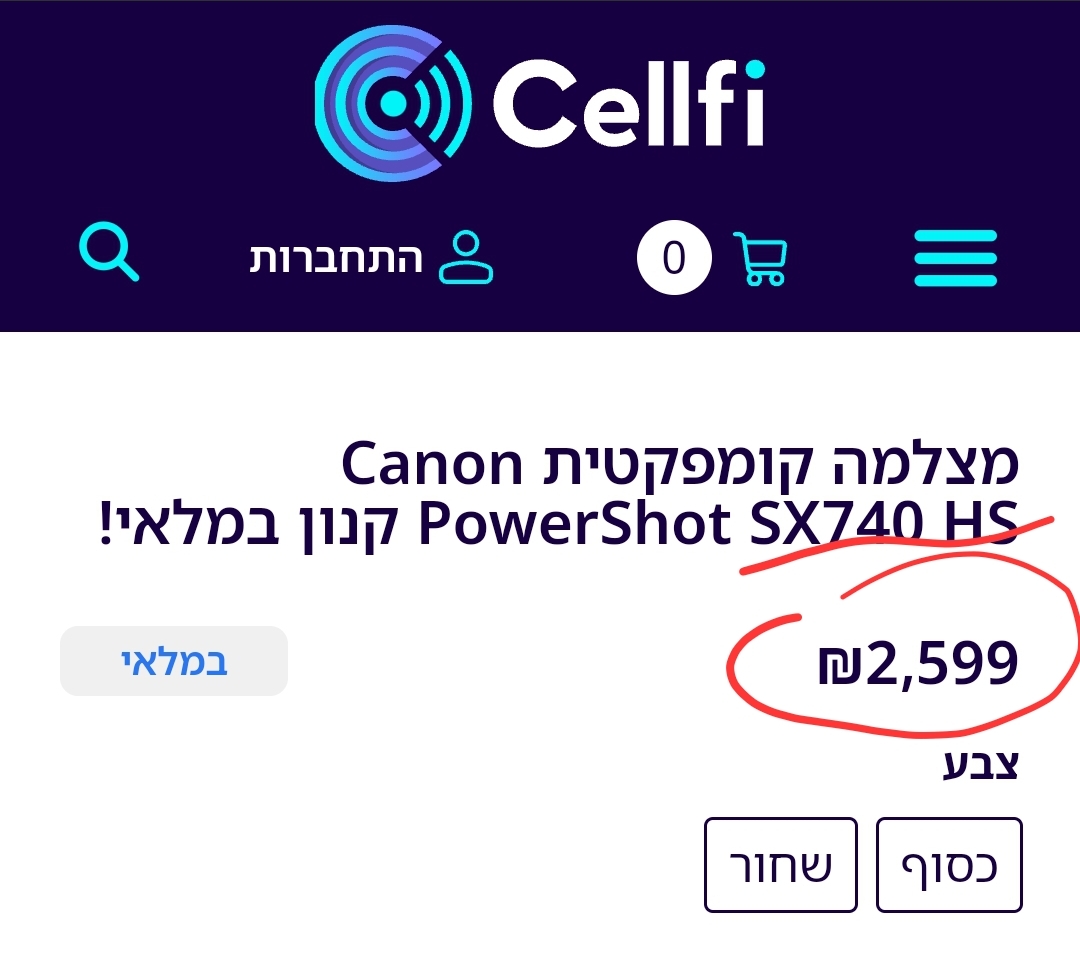 מחפשת לקנות מצלמת קנון 740 חדשה במחיר טוב.