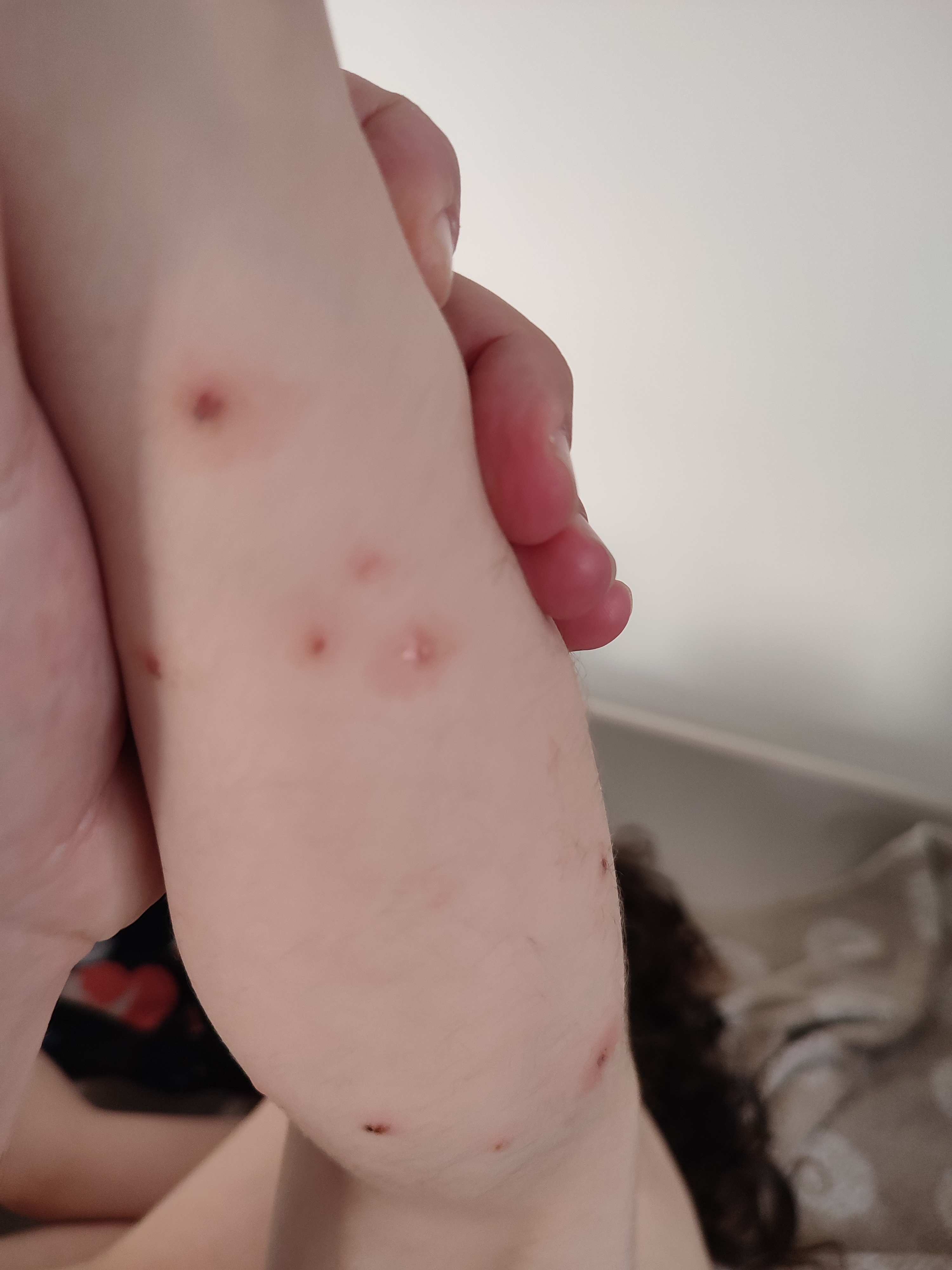 האם לפי התמונה זה נראה אבעבועות? עקיצה? (נגיע לרופא רק שבוע הבא) אשמח עם למישהו יש מושג