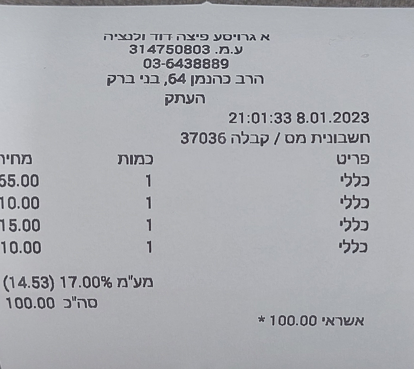 אם חנות מדפיסה קבלה ללא הפרט הזה
