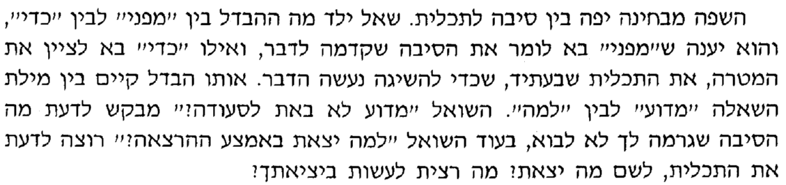 בשעתי -כשישבתי על ספסל הלימודים, היה ההבדל בין למה למדוע נהיר לכל בר בי רב.