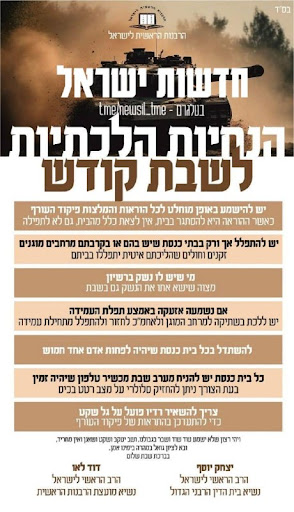 דרוש מידע האם יש הנחיות \הוראות הלכתיות לגבי המצב הבטחוני בשבת?