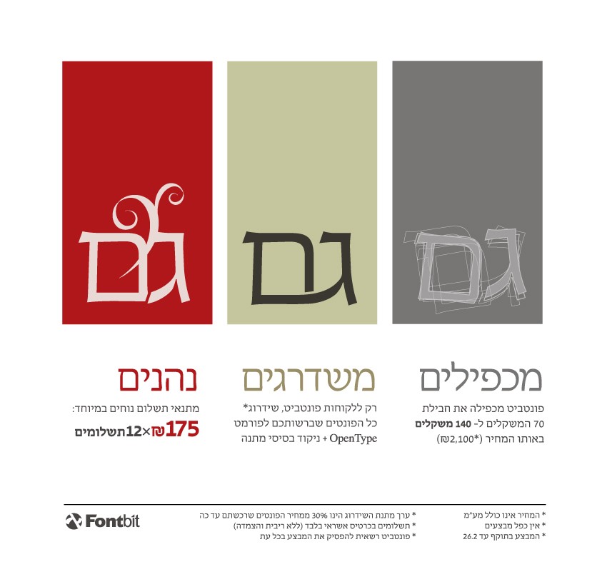 ישנה אפשרות לבחירת הפונטים במהלך שלושה חודשים.