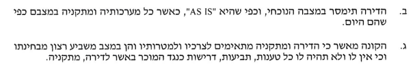 הסעיף מדבר על הדירה עצמה והמתקנים שלה
