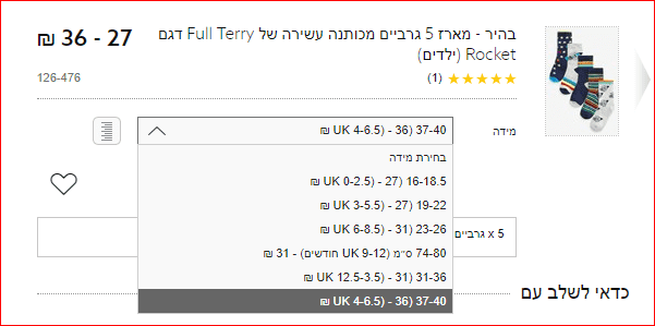 זה בדיוק מה שקרה לי. הזמנתי לגיל 5 שנים. וקיבלתי גרביים במידה 40 לגבר.