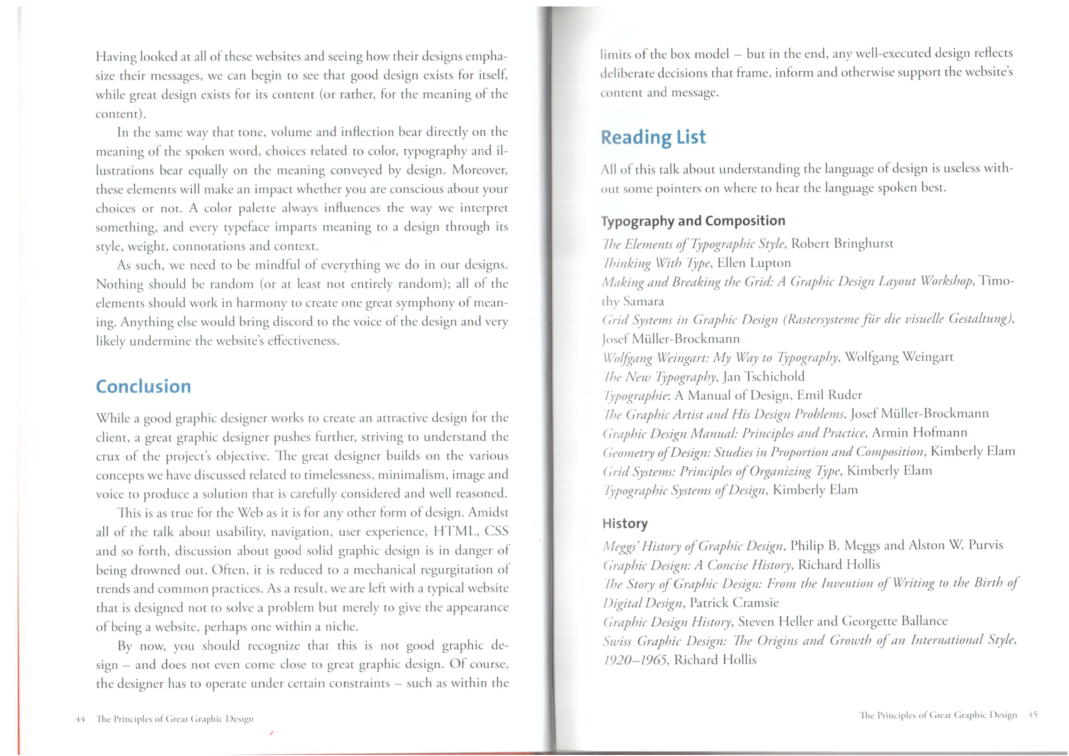 אבל כעת אתה אמור להיות מסוגל לזהות שזה אינו עיצוב גרפי טוב, ולא מתקרב לעיצוב גרפי מצויין. כמובן, שהמעצב נאלץ לעבוד תחת סט של מגבלות של סביבת הפעולה של דפי אינטרנט, אבל בסופו של דבר, כל עיצוב טוב משקף החלטות מושכלות היטב, שמגדירות ותומכות במגוון אופנים בתוכן ובמסר של האתר.