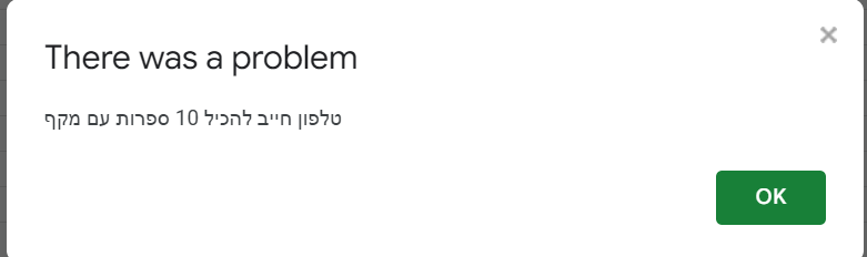 אבל שמתי לב שבוולידציות, יש אפשרות להגדיר איזה טקסט יוצג, זה חשוב ממש, כי נגיד שאני מגדיר שטלפון חייב להיות 10 ספרות + מקף ואני לא יודע את זה, לא עשינו כלום, אזהרה תוצג ואני לא אבין למה זה נתקע (אלא א"כ אכנס להגדרות)
