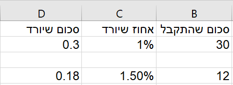 מה אני אמור להכניס כדי לקבל את התוצאה המתאימה בעמודה D ?