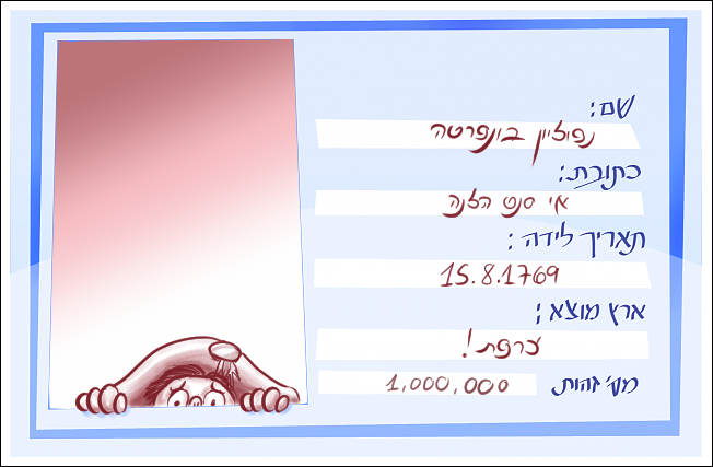 מצורף קובץ PNG שישמש לכם כתבנית ע"מ ליצור תעודות-זהות לדמויות שתבחרו.