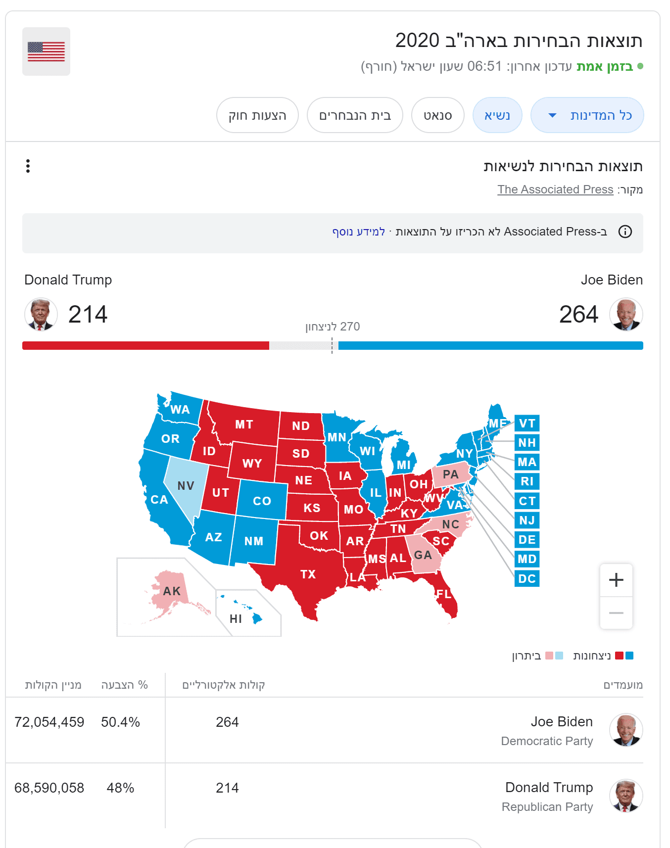 שיש עוד מדינות שלא סיימו לספור, אבל כשהפערים גדולים מכריזים על נצחון בטרם סיום ספירת הקולות.