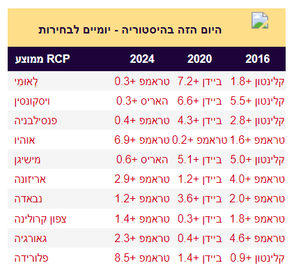 המספרים שרואים בצילום מסך שרואים את המדינות המתנדנדות זה לא הסקרים האחרונים אלא הסקרים של יומיים לפני.1730638768605.png