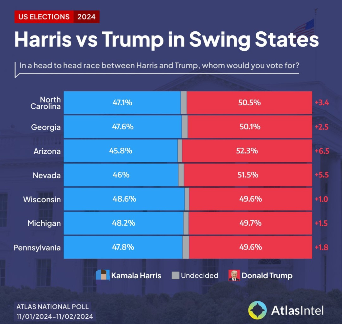 האריס פתחה פער של 0.2% בויסקונסין ו-0.7% במישיגן.