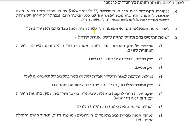 מצורף ההסכם בין ש"ס - אגודת ישראל.