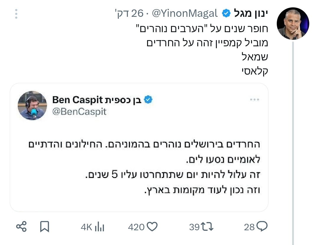 ושוב לא בהאשמה ולא בטרוניה אלא כנתון מציאותי