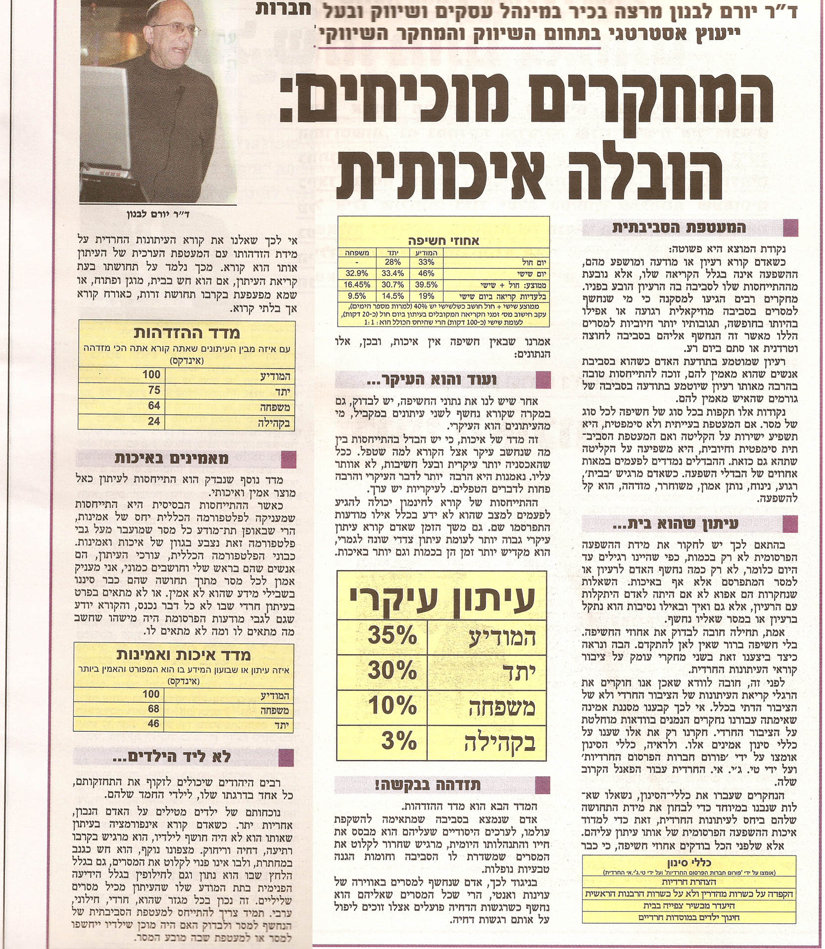 אולי לטובת מי שלא קורא המודיע, שמישהו יסרוק את הכתבה עם הד"ר המלומד. (את הסקר ראיתי, אבל אני מבין שאח"כ הוא הסביר את עצמו ואת הסקר) או למצער יתמצת בקצרה את דבריו,