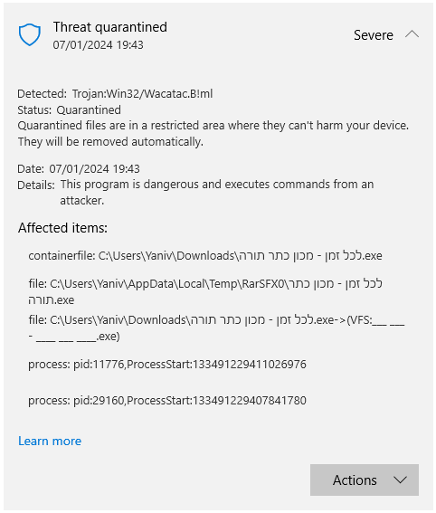 האנטי וירוס של חלונות דיווח את הממצאים האלו: