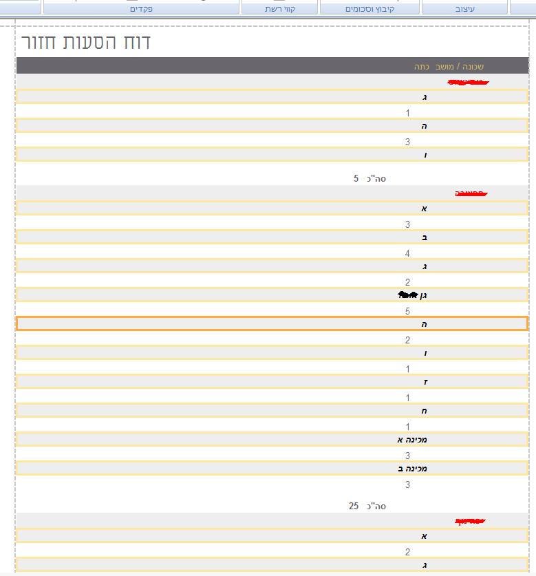 זהו הדוח שהצלחתי ליצור: (כמובן עוד לא מסודר)