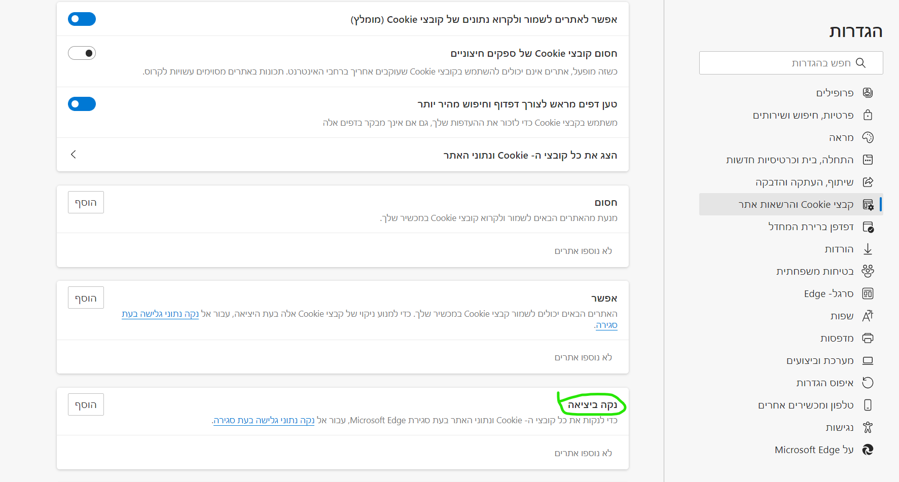 במייקרוסופט אדג' יש אפשרות שבכל יציאה מהדפדפן הוא יימחק את נתוני הגלישה והעוגיות