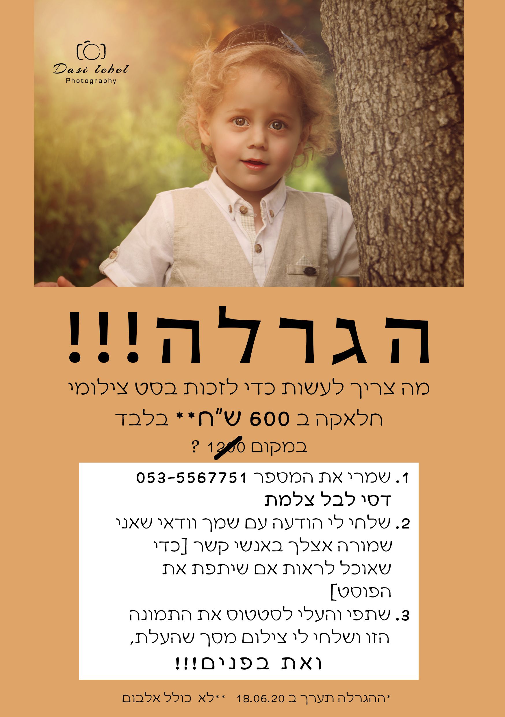 להכנס להגרלה שלחו הודעה למספר 053-5567751 דסי לבל צלמת