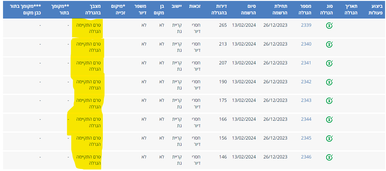 לא נכון, כנראה אתה מסתכל על הגרלות ישנות באלעד נכון להרגע עדיין אין תוצאות הבנתי מגורם במשרד השיכון שזה בתהליך חלק יידעו כבר היום ועד מחר וודאי יהיו לכולם תוצאות