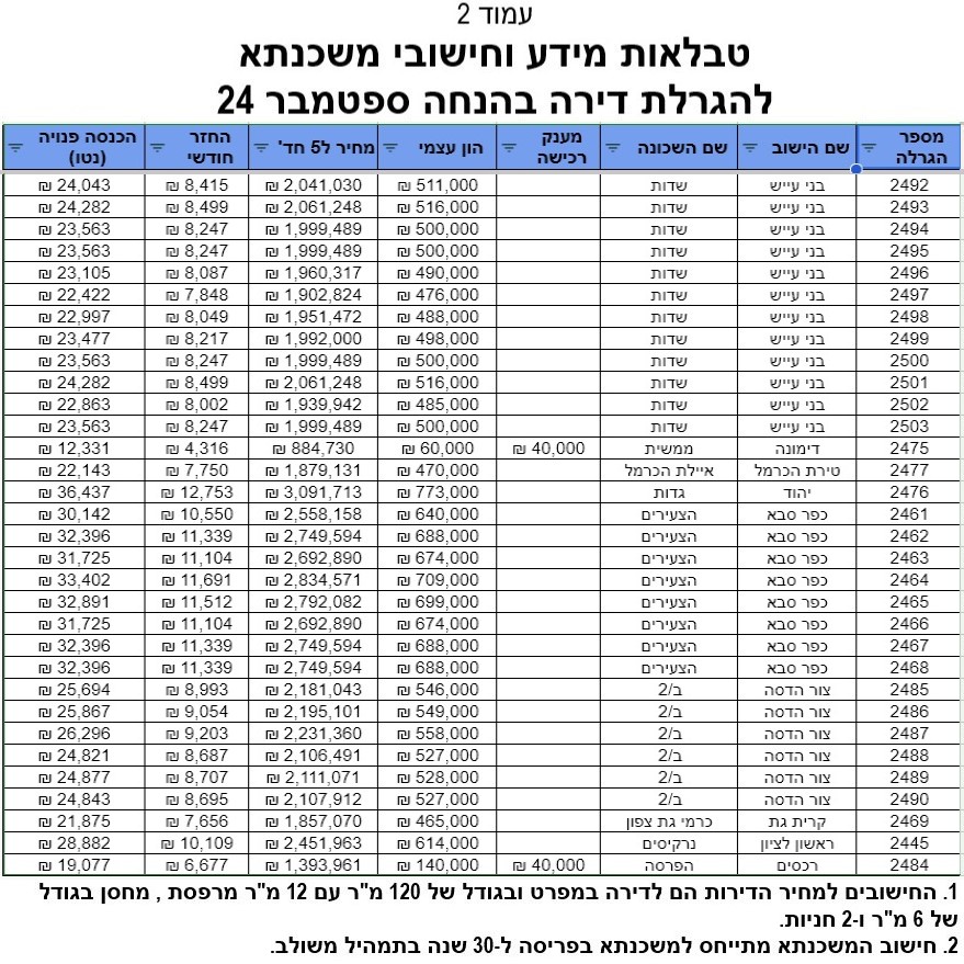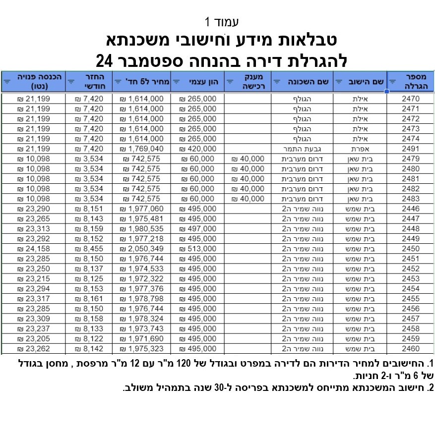 (שימו לב: בבית שמש נצרך הון עצמי של כ500K והחזרים של מעל 8K בדירות הללו!).