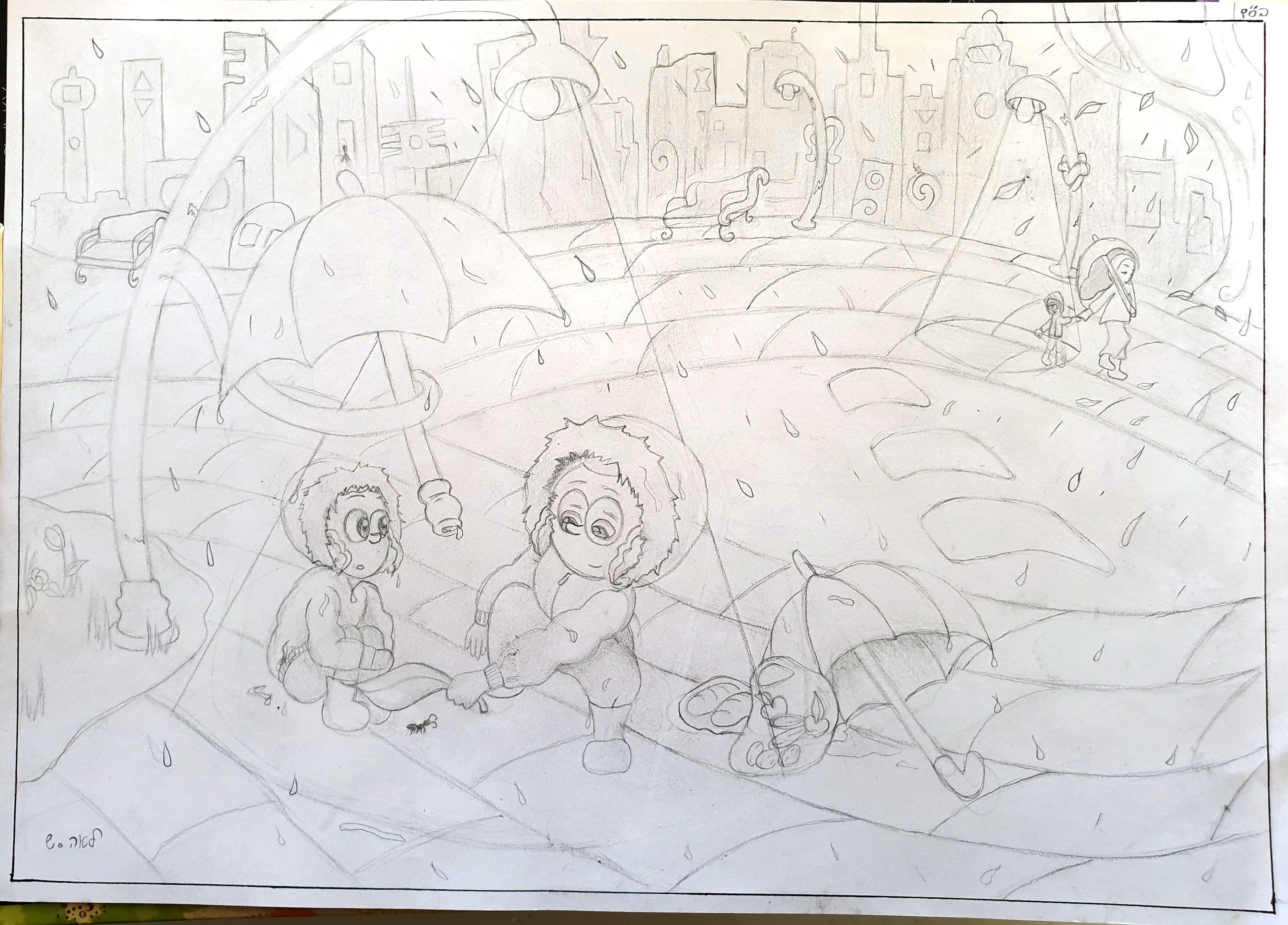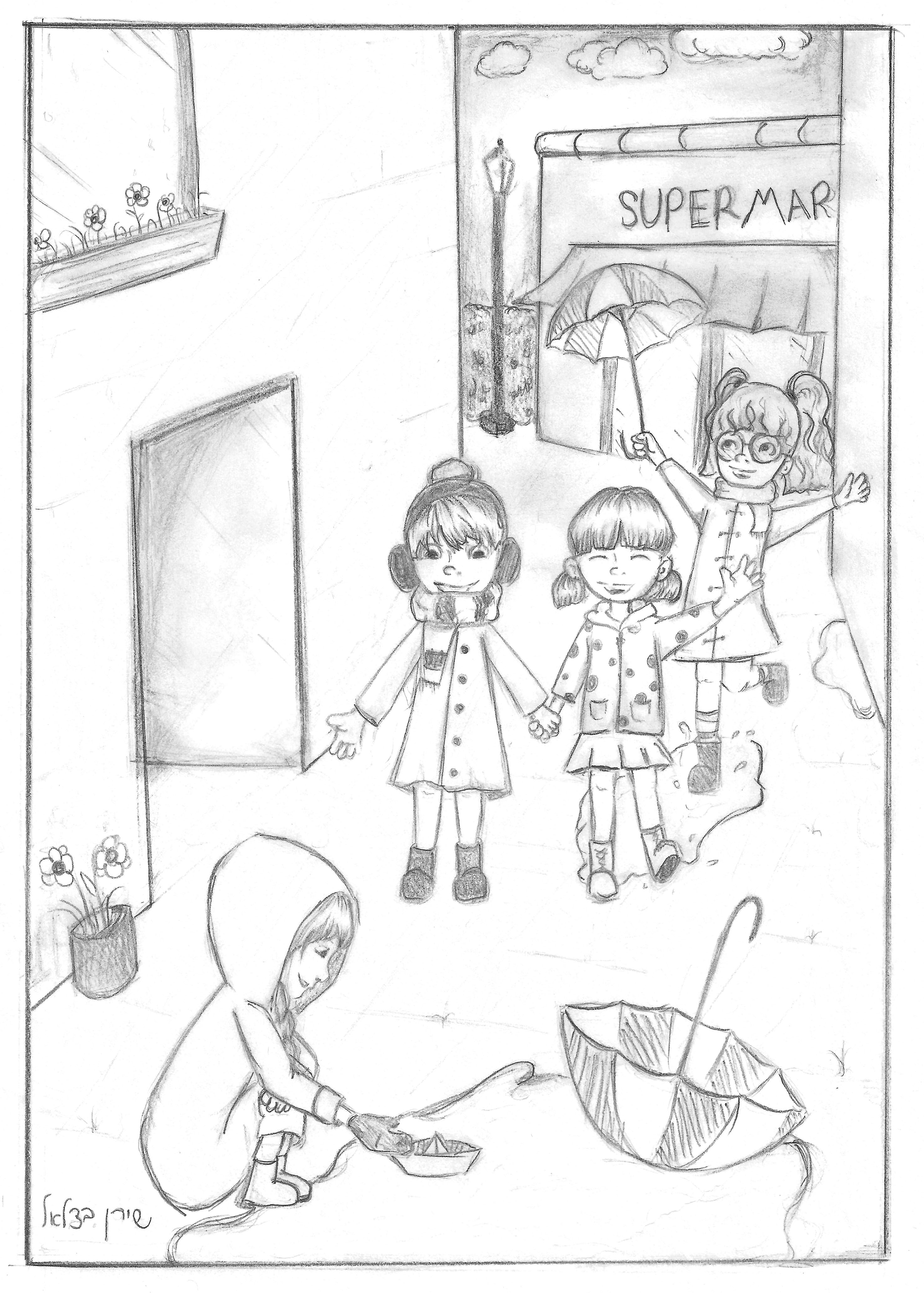 4. ילדים משחקים בגשם- רטובים אבל שמחים ומאושרים.