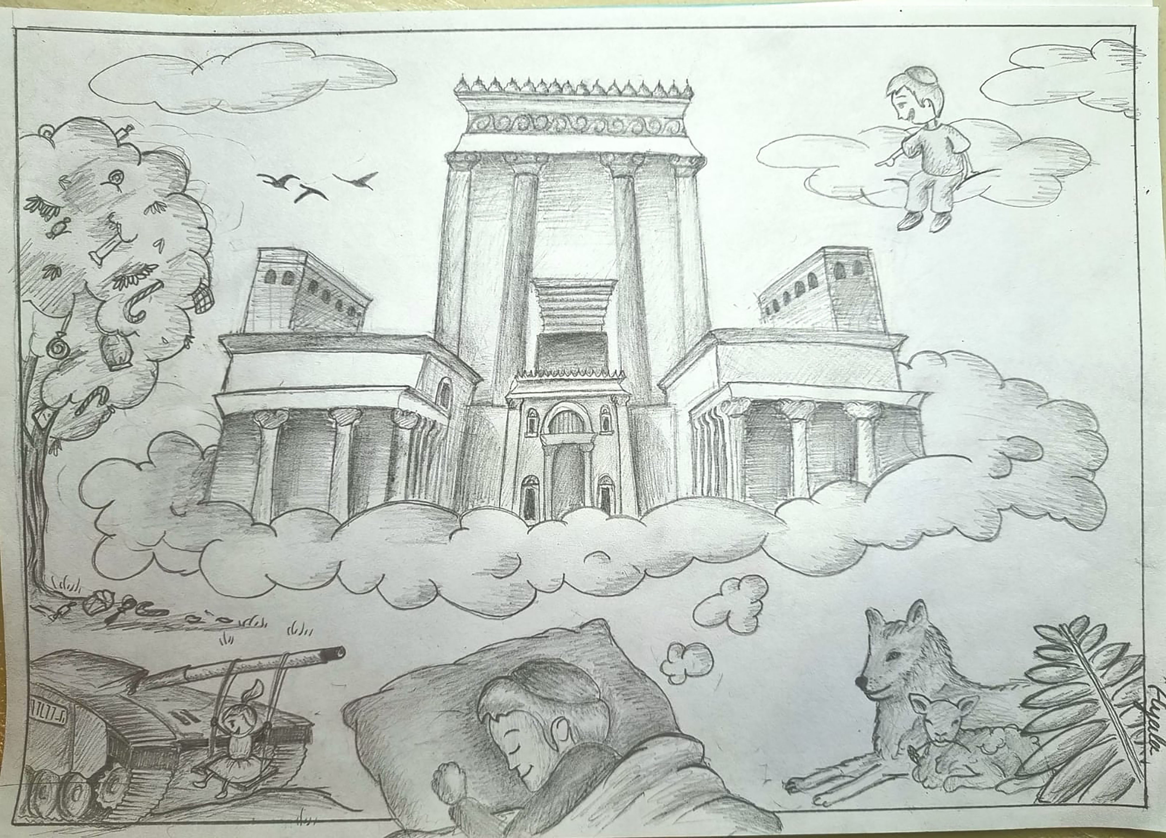 בפרוייקט ביניים תלמידות היו צריכות לצייר איור ידני באחת מהנושאים: