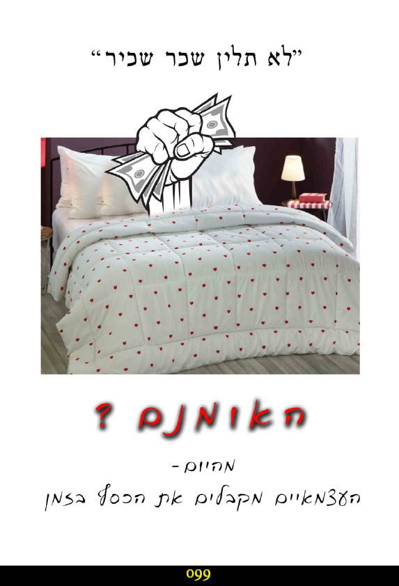זה פחות או יותר המסלול שאותו עוברות בחודשים אלו מאות משפחות מאנ"ש שכל מה שהם רצו זה לחתן את הילדים בכבוד וכעת הם מרוסקים לחלוטין וייקח להם שנים רבות אם בכלל כדי להתאושש מהתהום הכלכלית שהם הוכנסו אליה בידי משווק פלוני.